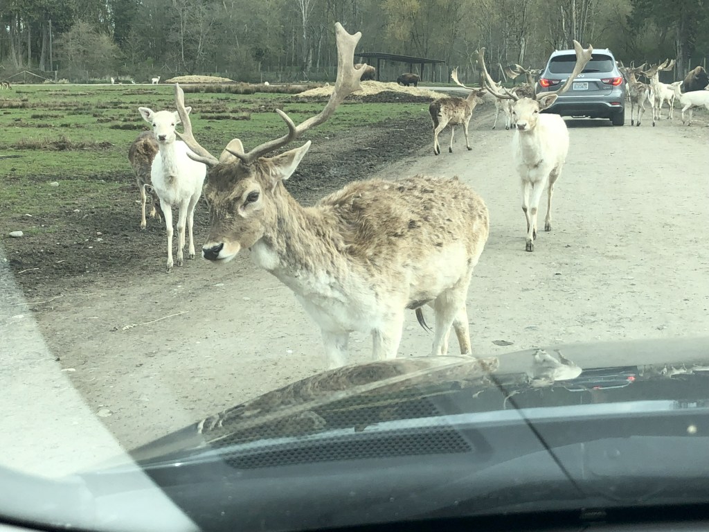 The Olympic Game Farm is a drive thru experience. You stay in your car and drive thru the farm to have an up-close experience with Tibetan Yaks, Llamas, Zebras, Bison, Elk and more. You can even see Brown Bears, Tigers, Lions, Wolfs and more. Before you start your driving experience, you can purchase bread to feed most of the animals on the driving tour. I highly suggested purchasing at least one loaf, as it helps bring the animals closer and gives you an upfront and close experience with a Tibetan Yak or Bison’s tongue.